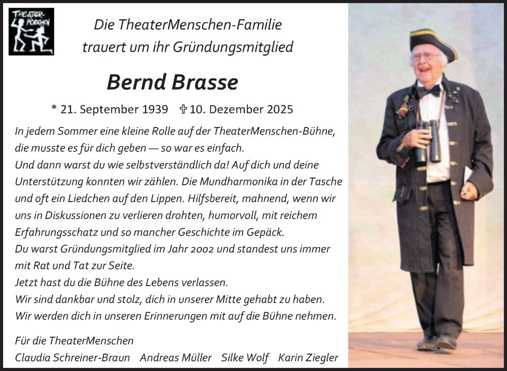 Hier finden Sie alle Traueranzeigen aus der Zeitung, die bisher für Bernd Brasse erschienen sind. Weitere Traueranzeigen, die in der Zeitung erscheinen, werden hier ebenfalls aufgelistet