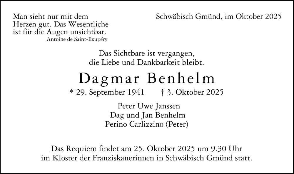 Hier finden Sie alle Traueranzeigen aus der Zeitung, die bisher für Dagmar Benhelm erschienen sind. Weitere Traueranzeigen, die in der Zeitung erscheinen, werden hier ebenfalls aufgelistet