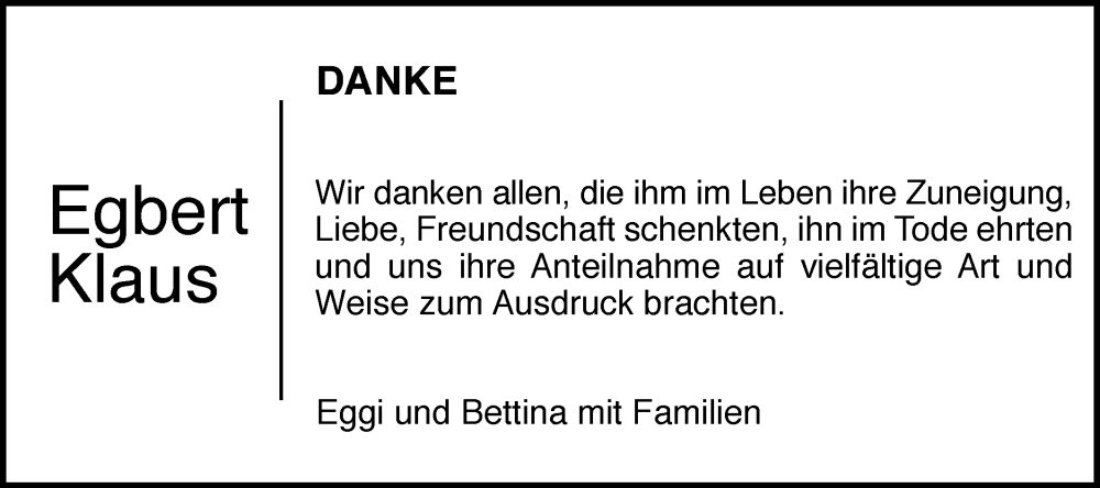 Hier finden Sie alle Traueranzeigen aus der Zeitung, die bisher für Egbert Klaus erschienen sind. Weitere Traueranzeigen, die in der Zeitung erscheinen, werden hier ebenfalls aufgelistet