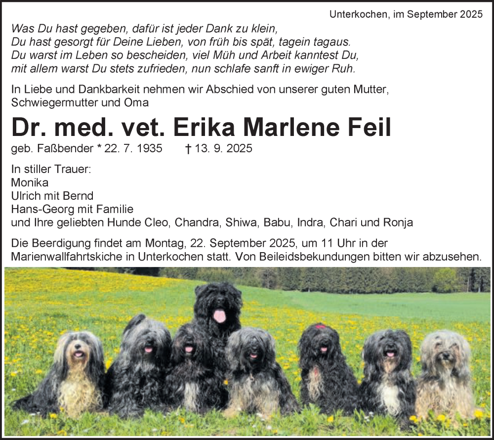 Hier finden Sie alle Traueranzeigen aus der Zeitung, die bisher für Erika Marlene Feil erschienen sind. Weitere Traueranzeigen, die in der Zeitung erscheinen, werden hier ebenfalls aufgelistet