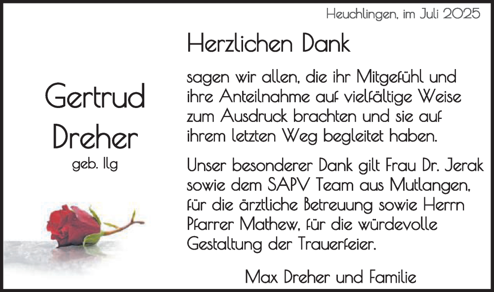 Hier finden Sie alle Traueranzeigen aus der Zeitung, die bisher für Gertrud Dreher erschienen sind. Weitere Traueranzeigen, die in der Zeitung erscheinen, werden hier ebenfalls aufgelistet
