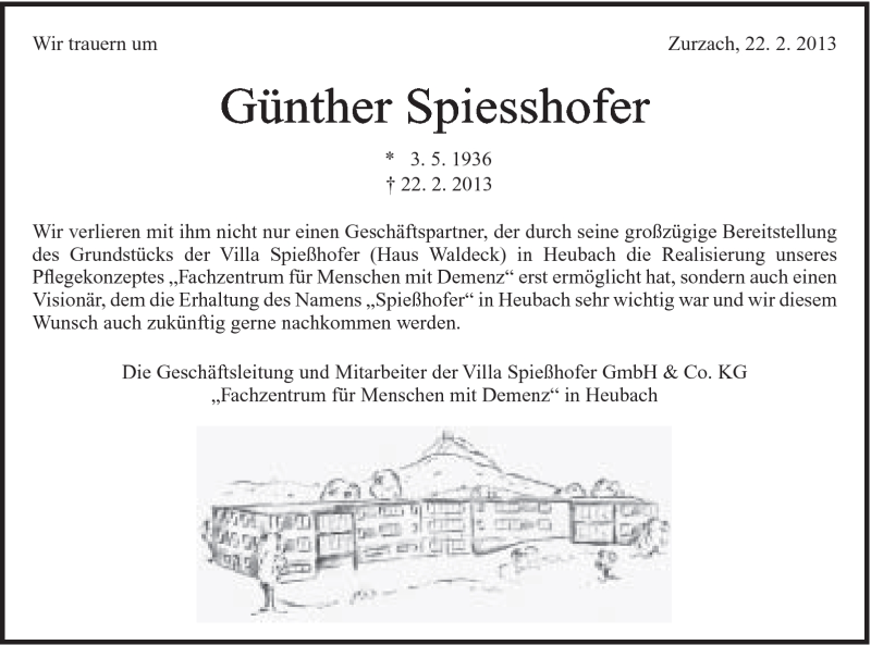 Hier finden Sie alle Traueranzeigen aus der Zeitung, die bisher für Günther Spiesshofer erschienen sind. Weitere Traueranzeigen, die in der Zeitung erscheinen, werden hier ebenfalls aufgelistet