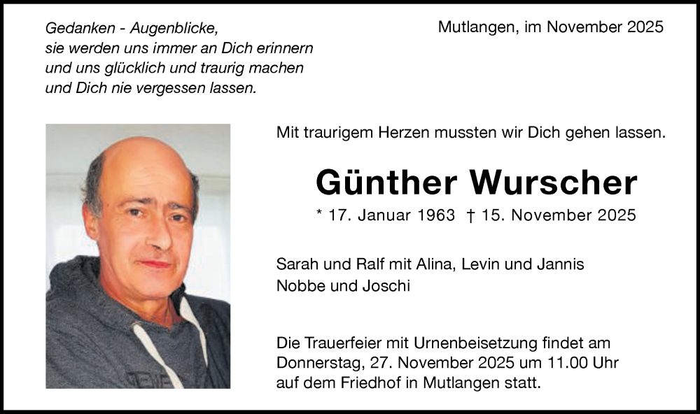 Hier finden Sie alle Traueranzeigen aus der Zeitung, die bisher für Günther Wurscher erschienen sind. Weitere Traueranzeigen, die in der Zeitung erscheinen, werden hier ebenfalls aufgelistet