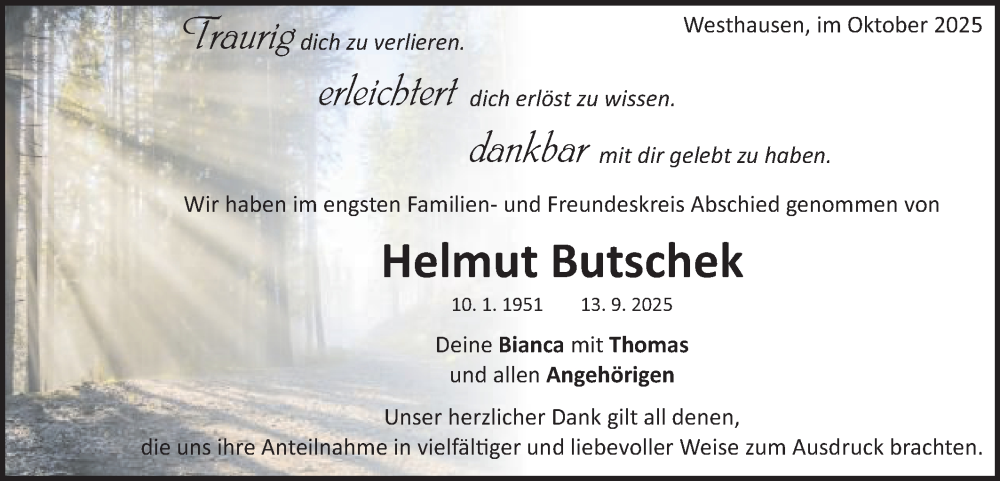 Hier finden Sie alle Traueranzeigen aus der Zeitung, die bisher für Helmut Butschek erschienen sind. Weitere Traueranzeigen, die in der Zeitung erscheinen, werden hier ebenfalls aufgelistet