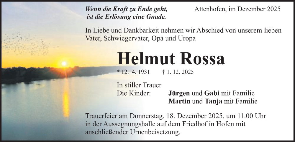 Hier finden Sie alle Traueranzeigen aus der Zeitung, die bisher für Helmut Rossa erschienen sind. Weitere Traueranzeigen, die in der Zeitung erscheinen, werden hier ebenfalls aufgelistet