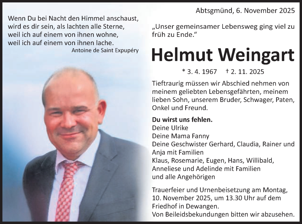 Hier finden Sie alle Traueranzeigen aus der Zeitung, die bisher für Helmut Weingart erschienen sind. Weitere Traueranzeigen, die in der Zeitung erscheinen, werden hier ebenfalls aufgelistet