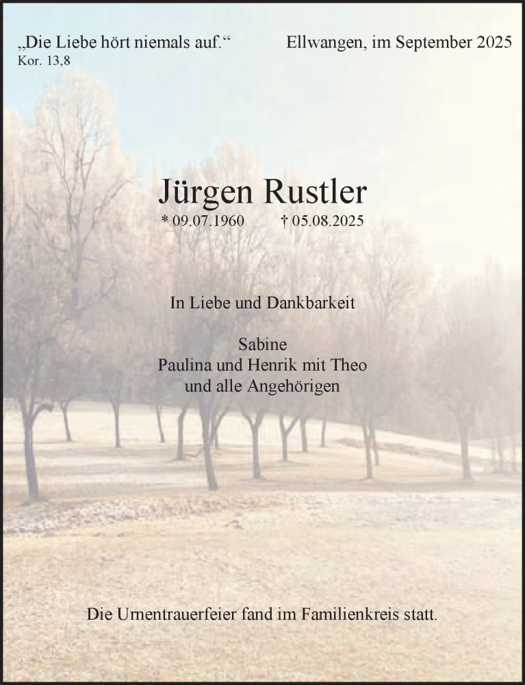 Hier finden Sie alle Traueranzeigen aus der Zeitung, die bisher für Jürgen Rustler erschienen sind. Weitere Traueranzeigen, die in der Zeitung erscheinen, werden hier ebenfalls aufgelistet