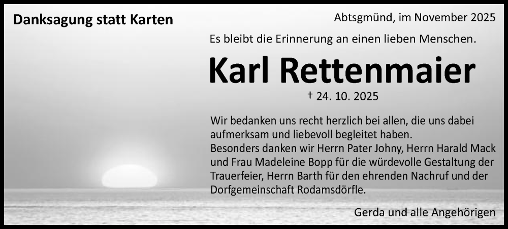 Hier finden Sie alle Traueranzeigen aus der Zeitung, die bisher für Karl Rettenmaier erschienen sind. Weitere Traueranzeigen, die in der Zeitung erscheinen, werden hier ebenfalls aufgelistet