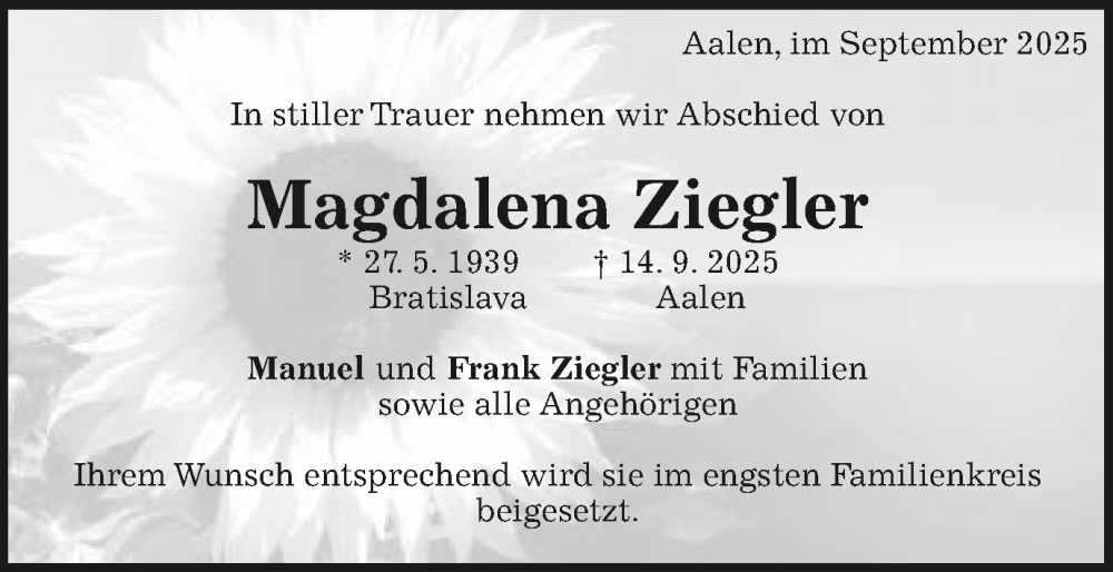 Hier finden Sie alle Traueranzeigen aus der Zeitung, die bisher für Magdalena Ziegler erschienen sind. Weitere Traueranzeigen, die in der Zeitung erscheinen, werden hier ebenfalls aufgelistet