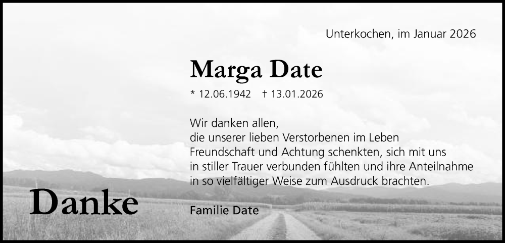 Hier finden Sie alle Traueranzeigen aus der Zeitung, die bisher für Marga Date erschienen sind. Weitere Traueranzeigen, die in der Zeitung erscheinen, werden hier ebenfalls aufgelistet