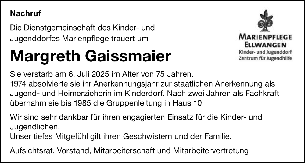 Hier finden Sie alle Traueranzeigen aus der Zeitung, die bisher für Margreth Gaissmaier erschienen sind. Weitere Traueranzeigen, die in der Zeitung erscheinen, werden hier ebenfalls aufgelistet