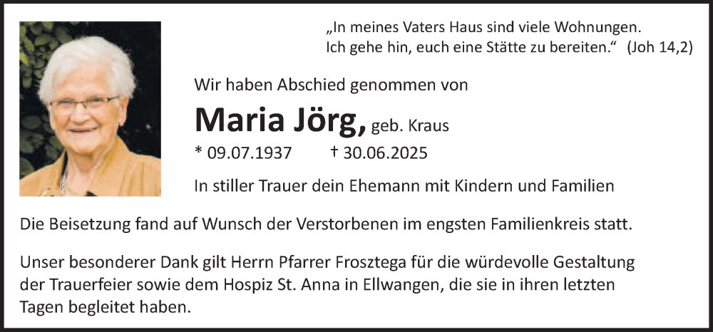 Hier finden Sie alle Traueranzeigen aus der Zeitung, die bisher für Maria Jorg erschienen sind. Weitere Traueranzeigen, die in der Zeitung erscheinen, werden hier ebenfalls aufgelistet