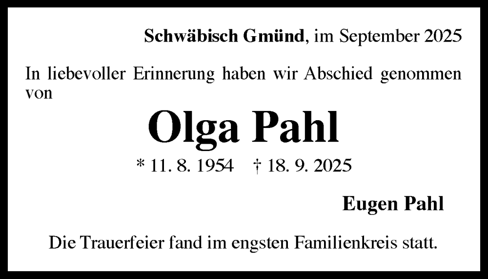 Hier finden Sie alle Traueranzeigen aus der Zeitung, die bisher für Olga Pahl erschienen sind. Weitere Traueranzeigen, die in der Zeitung erscheinen, werden hier ebenfalls aufgelistet