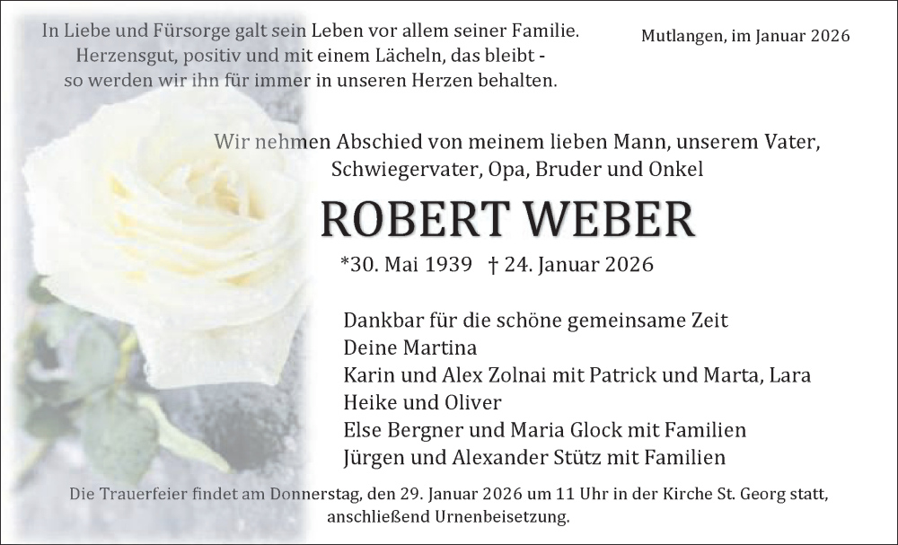 Hier finden Sie alle Traueranzeigen aus der Zeitung, die bisher für Robert Weber erschienen sind. Weitere Traueranzeigen, die in der Zeitung erscheinen, werden hier ebenfalls aufgelistet