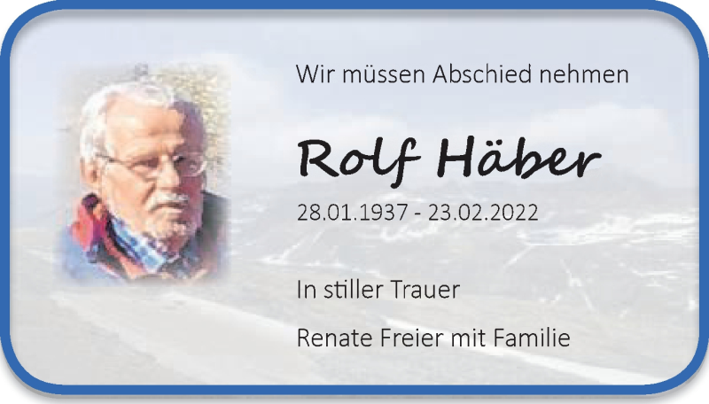 Hier finden Sie alle Traueranzeigen aus der Zeitung, die bisher für Rolf Häber erschienen sind. Weitere Traueranzeigen, die in der Zeitung erscheinen, werden hier ebenfalls aufgelistet