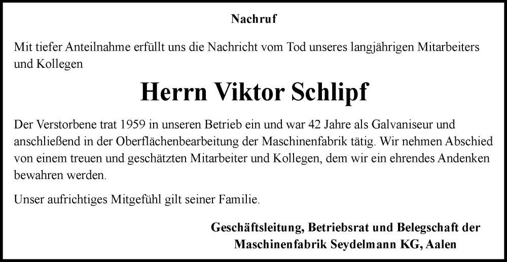 Hier finden Sie alle Traueranzeigen aus der Zeitung, die bisher für Viktor Schlipf erschienen sind. Weitere Traueranzeigen, die in der Zeitung erscheinen, werden hier ebenfalls aufgelistet